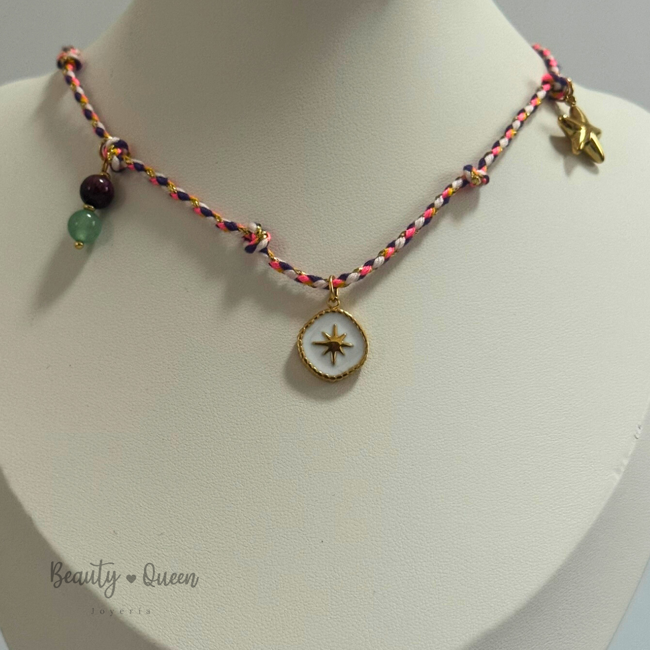 El Collar Emilia es el accesorio perfecto para darle vida a tus looks playeros o casuales. Con su diseño entrelazado y dijes encantadores, aporta un toque divertido y fresco que hará que tu estilo destaque en cualquier ocasión. Ideal para quienes buscan un toque de alegría y personalidad en su outfit diario. ¡Luce radiante y llena de energía con este collar único!